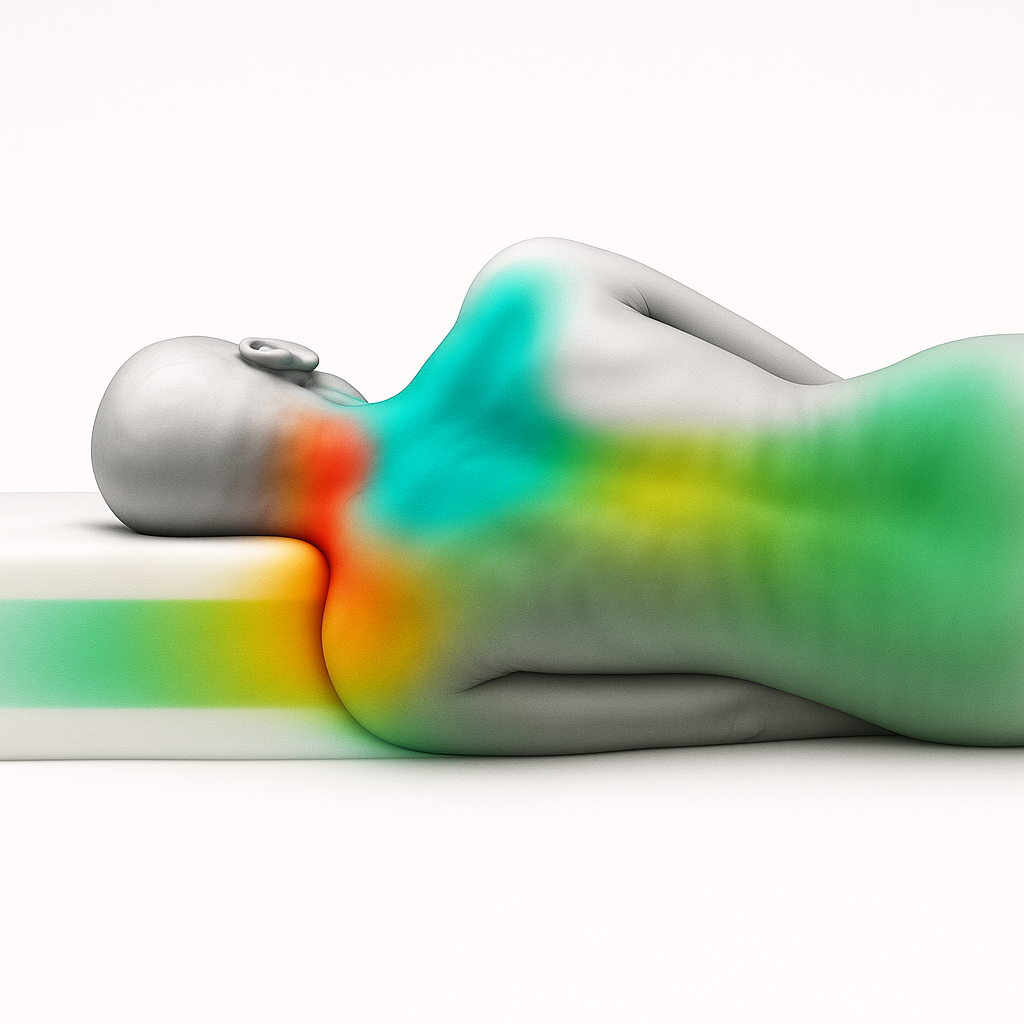 Fehlende Entlastung zwingt die Muskulatur, während des Schlafs „mitzuarbeiten“. Das führt zu Verspannungen, einer angespannten Schlaftiefe und reduziert die natürliche Erholung des Körpers.