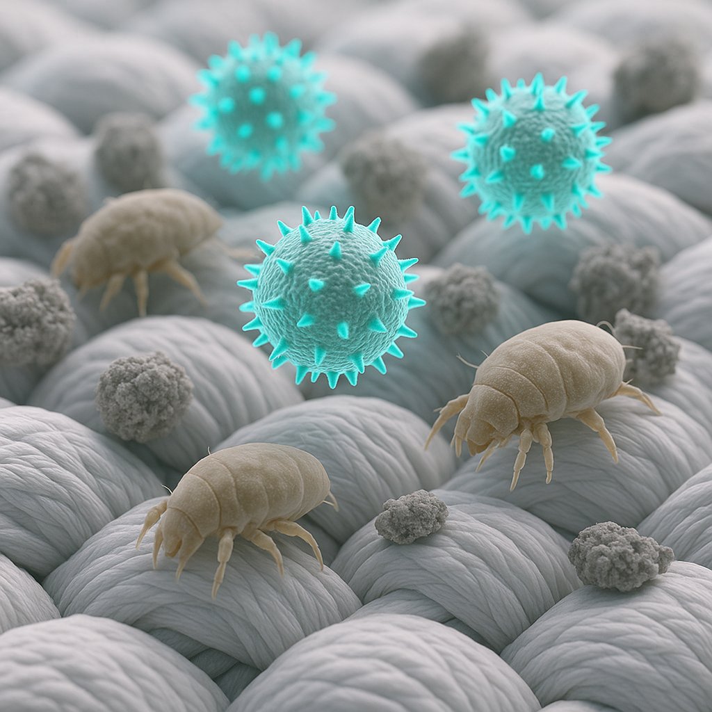 Ungeeignete Materialien und fehlende Belüftung unterstützen die Ansammlung von Milbenallergenen – besonders problematisch bei empfindlichen Atemwegen.