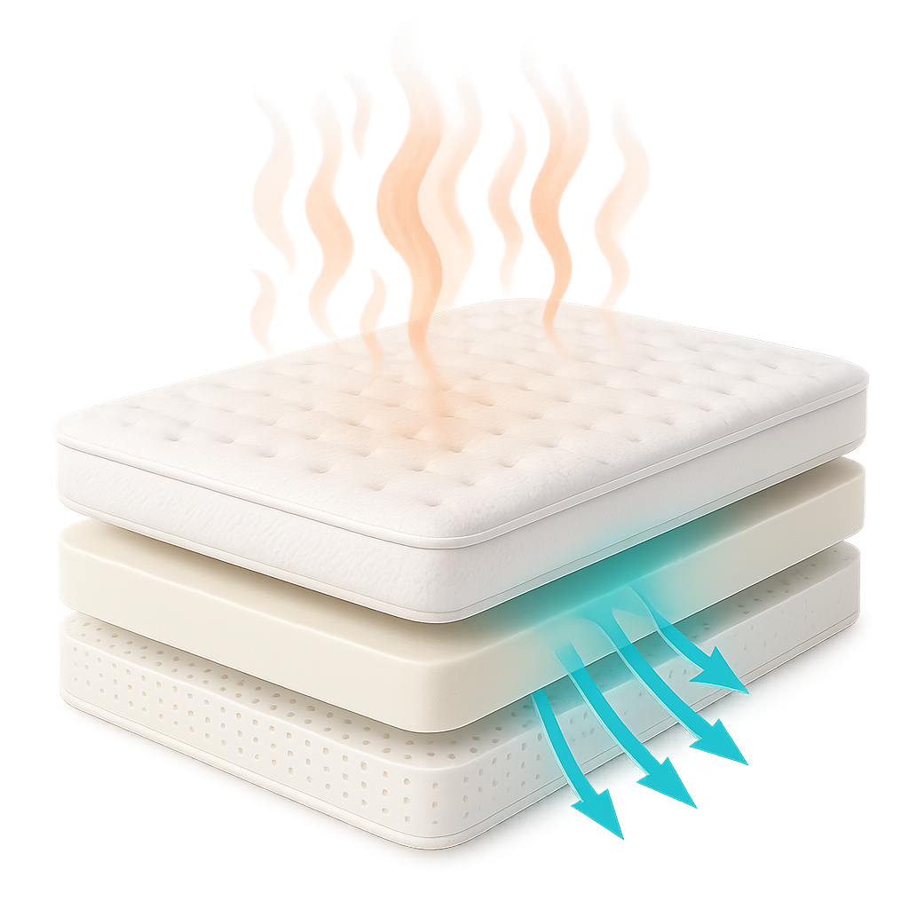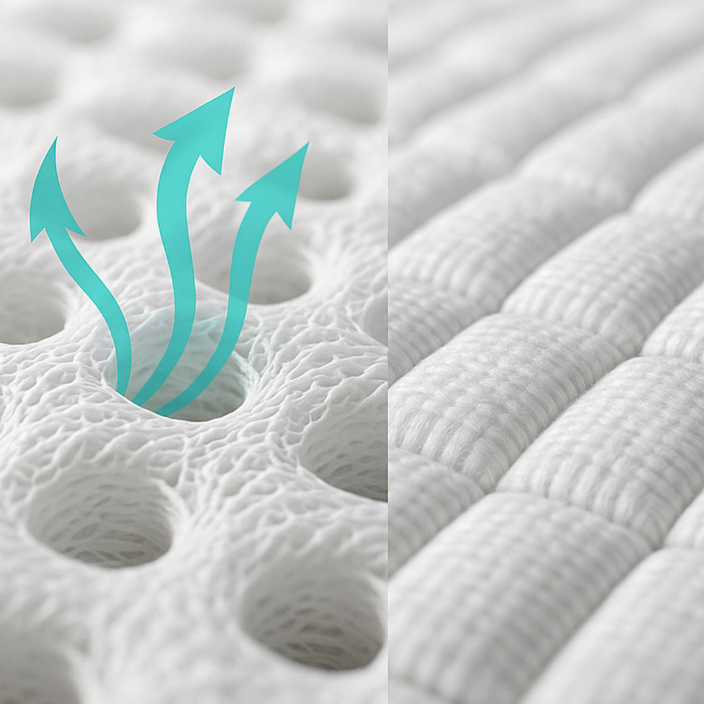 Schlafsysteme, die nicht atmungsaktiv sind, stauen Wärme und Feuchtigkeit. Das begünstigt Keime und beeinträchtigt Menschen mit Allergien, Neurodermitis oder sensibler Haut.