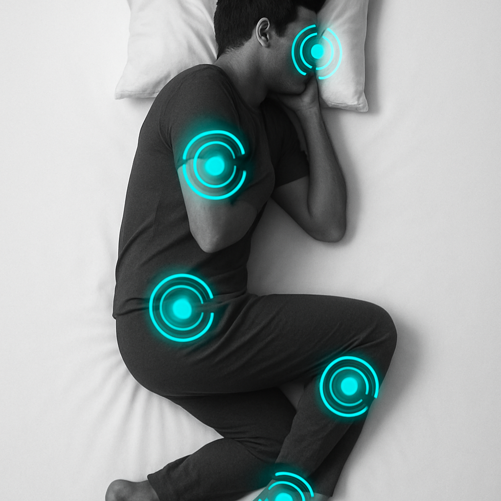 Wenn bestimmte Körperbereiche überlastet werden, reagiert der Körper mit Bewegung. Das Ergebnis: wenig Tiefschlaf, regelmäßiges Aufwachen und mangelnde Erholung.