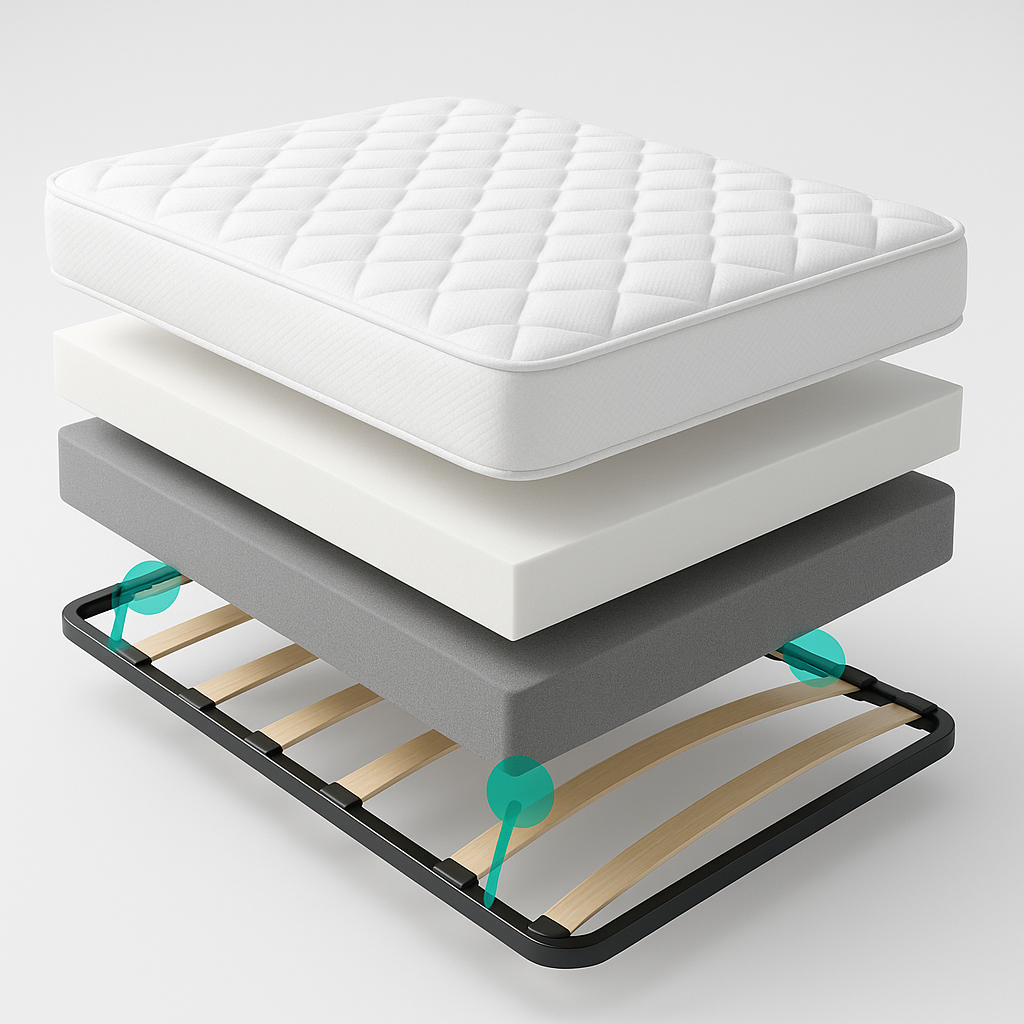 Matratze und Rahmen arbeiten nicht harmonisch zusammen. Das führt zu instabilem Liegen, Mikro-Bewegungen und einer deutlich reduzierten Schlafqualität.